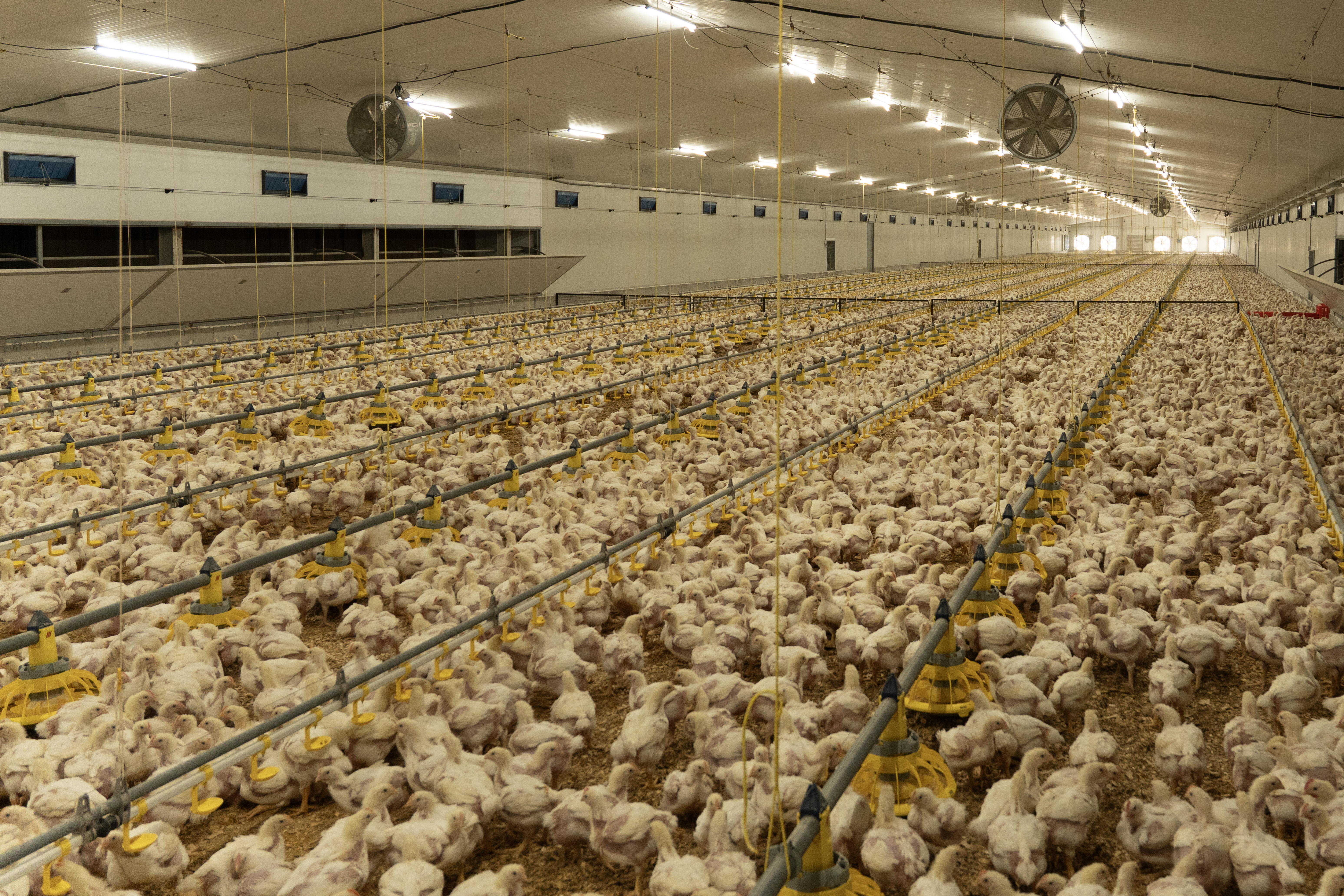 مزارع دجاج اللحم المتطورة، حيث ينمو في بيئة مكيفة ومراقبة بأحدث الأنظمة.